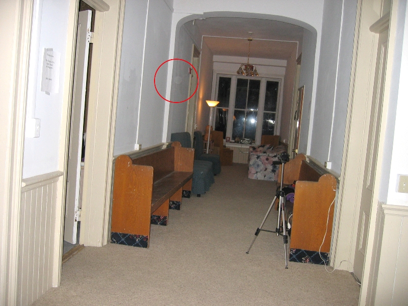 Video_ghostWalkByCamera_StMarys While recording the monitor view of a camera that was set in the attic hallway, a spirit ran in