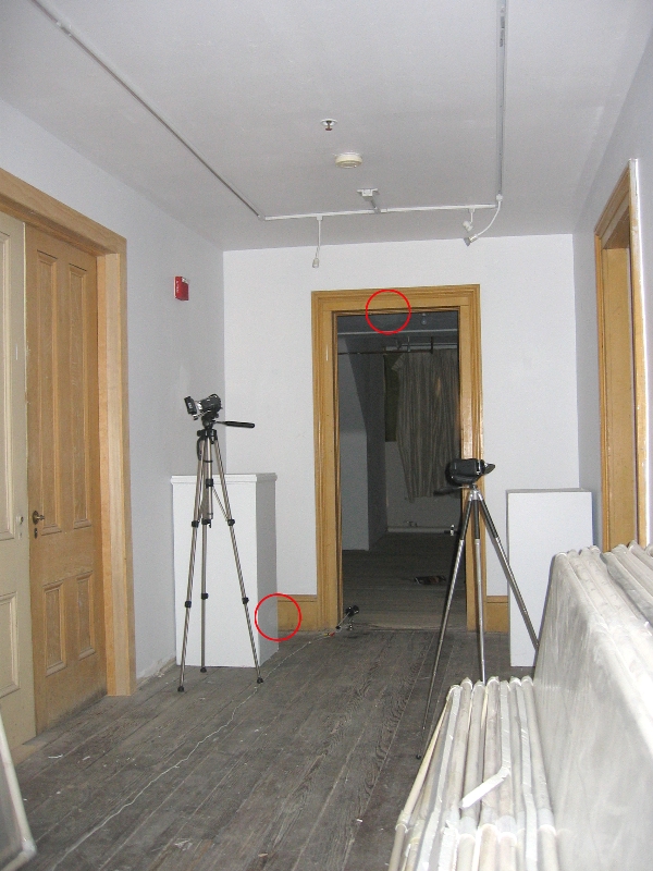 During the Ghost Hunting Party, TVI technician Todd had set up cameras in different locations of the hospital. Guests could then watch, via a